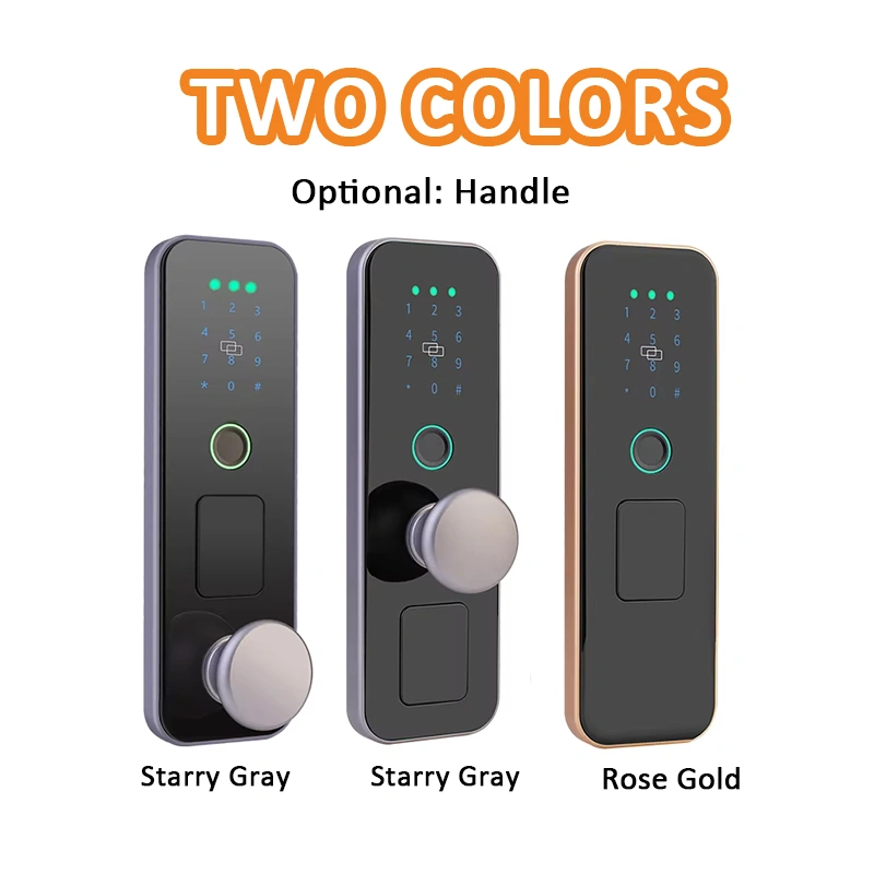 Unlocking methods: Fingerprint, Card, Key, Password, TT Lock App, Phone NFC unlocking.