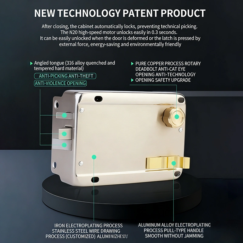 ③After closing the door, it automatically locks mechanically. It is resistant to technical insertion. The N20 speed-sensing motor can unlock easily in 0.3 seconds. It can also be unlocked easily when the door is deformed and subjected to external force pressing on the tongue. It is energy-saving and environmentally friendly.