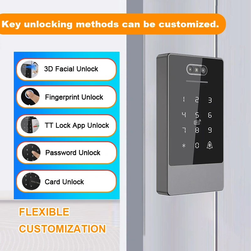 Unlocking methods: Face recognition, fingerprint, password, IC card, TT Lock App(remote with gateway).