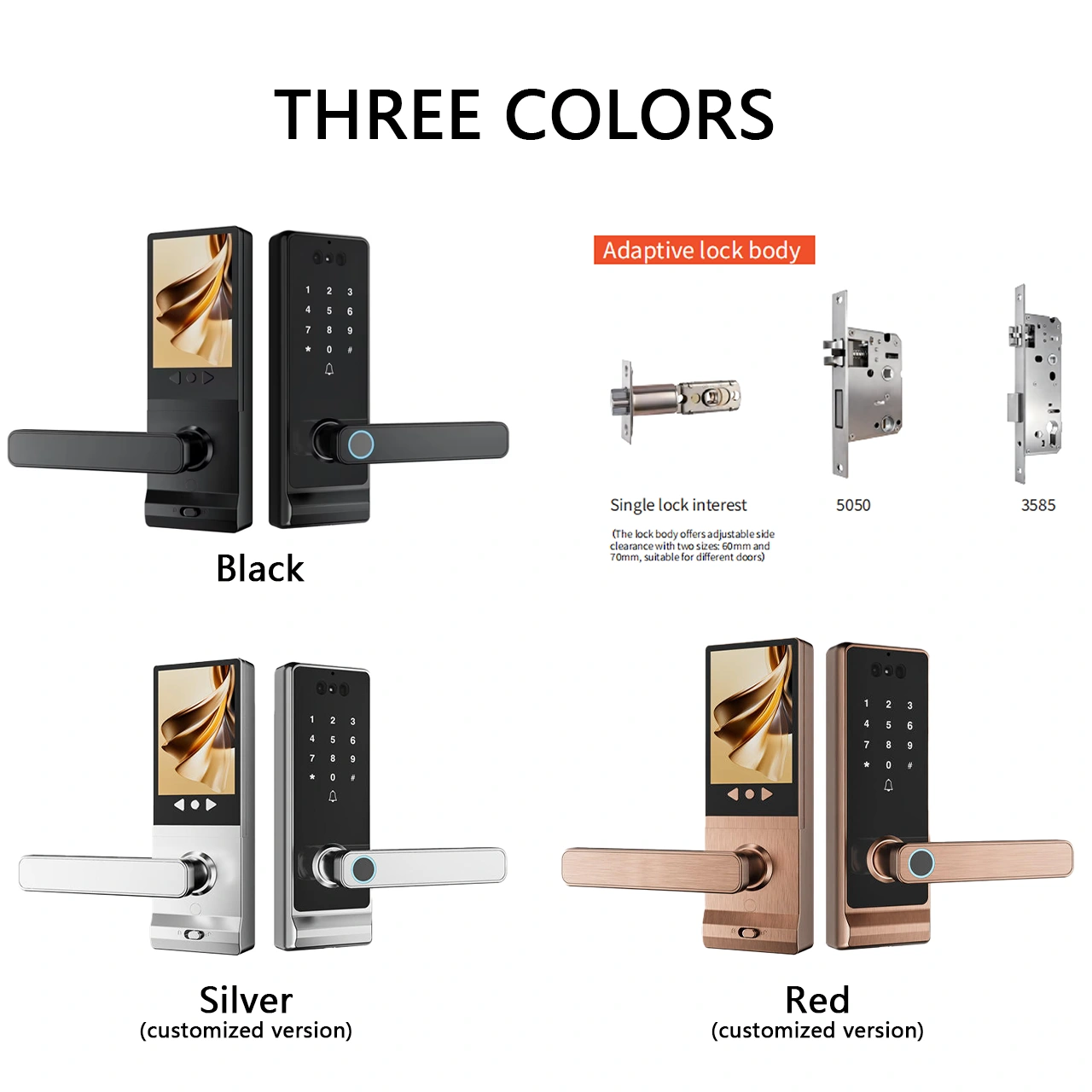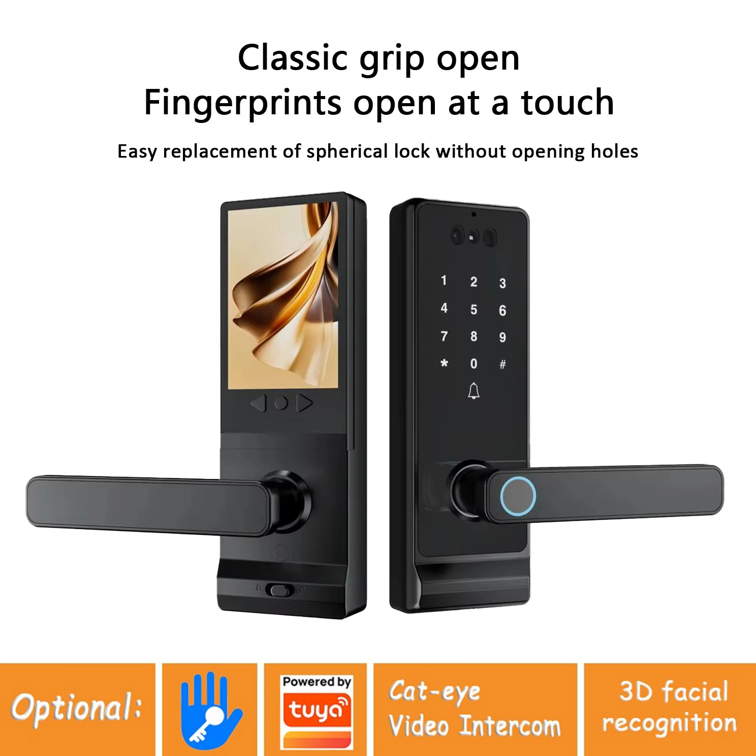④Tuya Face Recognition+Cat Eye model: Fingerprint, Password, Card, Key, Tuya App, Face Recognition, Cat Eye Video Intercom;
